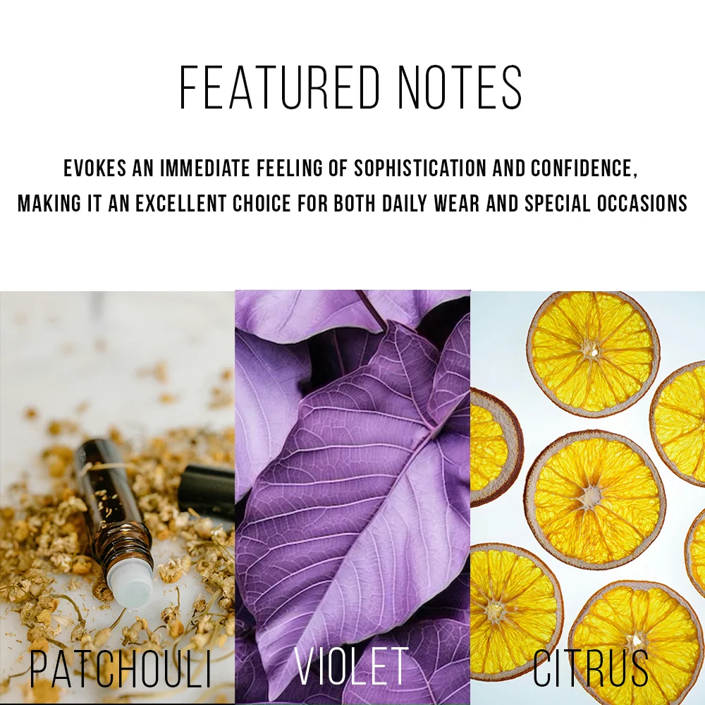 Citrus, Vetiver, and Musk signify strength and sophistication. Available in a 50 ml bottle with a high EDP concentration. Crafted with 20% to 25% oil for exceptional longevity.